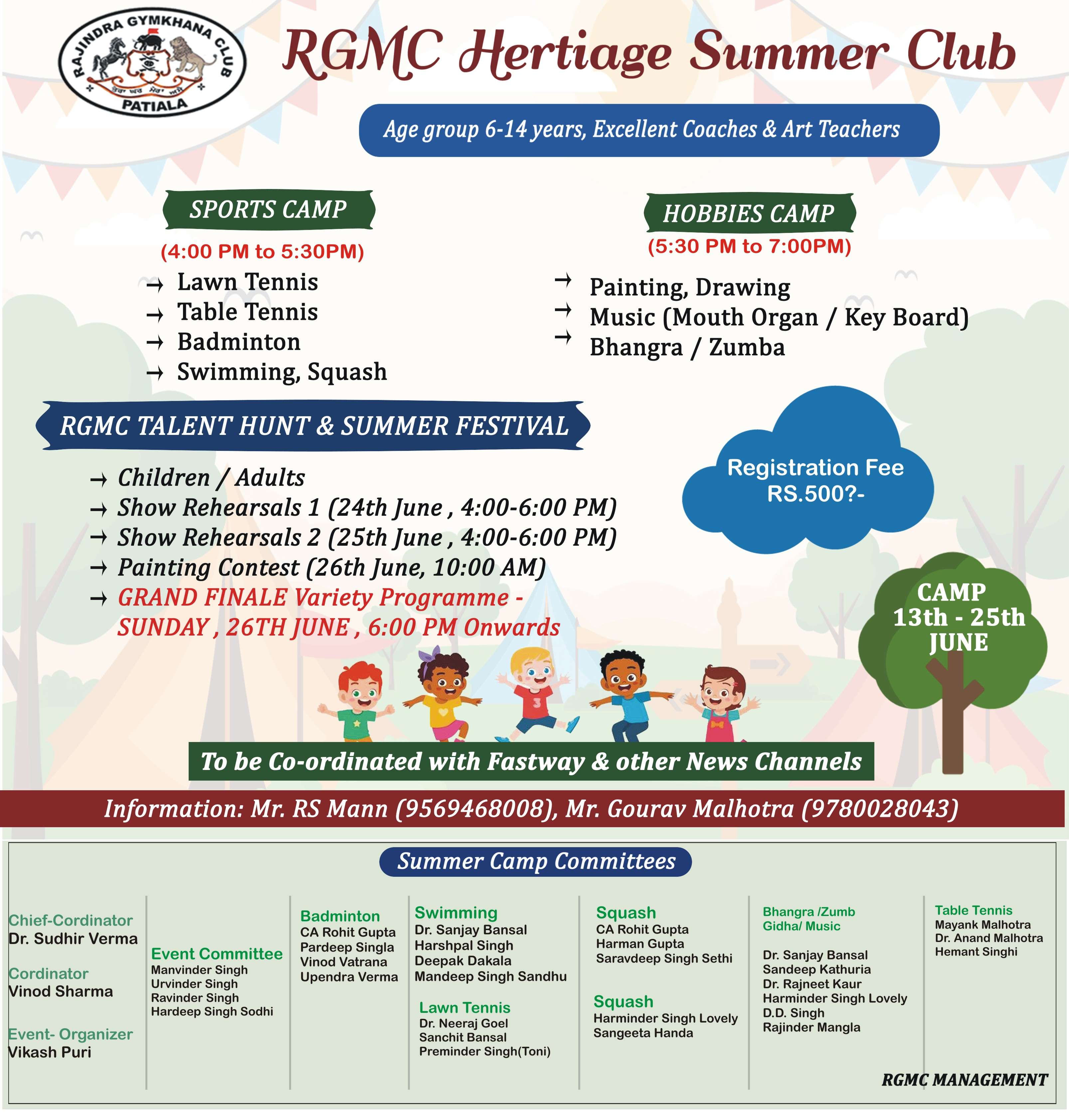 RGMC Talent Hunt & Summer Festival for kids Age Group 6-14 years, 13th to 25th June 2022. Grand Finale Sunday 26th June, 2022, 6:00PM onwards.